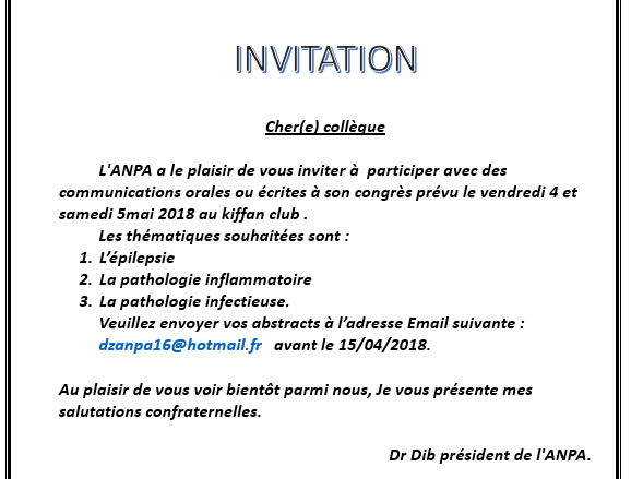 L'Association des Neurologues Privés d'Alger (ANPA) organise le 04 et 05 Mai 2018